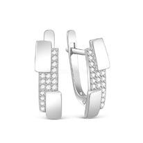 Серьги-пусеты Ромбы из серебра с фианитами родированные 925 пробы 2-250р200