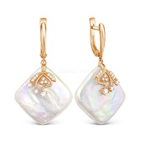 Серьги из золочёного серебра с культ.жемчугом и фианитами