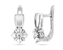 Серьги из серебра с бриллиантами и плавленым кварцем родированные
