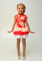 Праздничное платье классического кроя для маленьких принцесс. Лиф с круглым вырезом горловины и нижняя пышная юбка выполнены из ткани атлас-жаккард, с изысканым узором. Верхний слой юбки выполнен из сетки. Платье дополнено оригинальным атласным поясом-баской из воздушных перьев и очаровательной броши из таких же перьев, что придает ему изысканой элегантности.