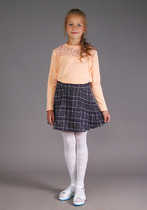 Блузка нарядная для девочек из высококачественного трикотажа(кулирка качество пенье). Блузка с воротником стойка, который завязывается атласными ленточками. Кокетка и рукава из эластичного кружева. Трикотажная блузка не деформируется после стирки, очень удобна и комфортна для вашей модницы. 92%хлопок, 8%лайкра
