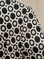 Блузка от бренда Bezko, размер 44 (S/M), выполнена из плотной ткани с баской. Чёрный цвет и узор "в клетку" придают изделию современный вид, круглая часть узора украшена люрексом. Отрезная по талии , баска