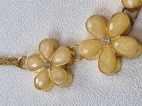 Новое ожерелье, металлическая двойная цепочка с 4 цветками.