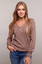 Прекрасный мягкий джемпер, выполненный мелкой вязкой, украшен жемчугом на ажурной полочке и рукавах (35% viscosa, 35% cotton, 30% polyester)