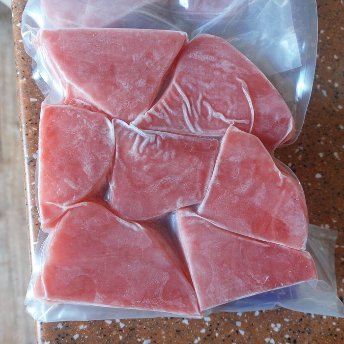 филе кусочками по 50-100 гр упаковно в вакумной упаковке по 500 гр