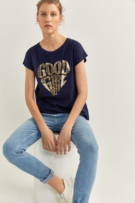 Идеальная футболка для лета из тонкого трикотажного полотна, украшенная аппликацией из пайеток GOOD GIRL.