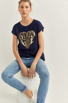 Футболка женская р.S с пайетками Springfield т.синяя