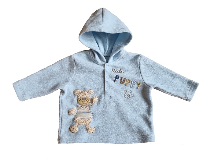 Б/У худи для новорожденного. В этом уютном флисовом худи, ваш малыш будет чувствовать себя тепло. А интересный дизайн с щенком непременно придется по душе. Планка на кнопках, длинный рукав, и вышитый щенок. Цвет: blue. Состав: 100% полиэстер. Размер: 0-6 months, для мальчика 0-6 месяцев, ростом 60-68 см. Состояние: б/у, отличное.