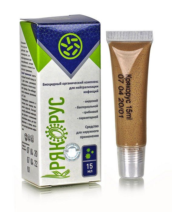 Крякорус — органический крем для нейтрализации инфекций. В составе натуральные экстракты растений 100%, эфирные масла, витаминный комплекс, мумиё и другие природные ингредиенты. Действие биологически активных компонентов направлено на уничтожение возбудителей грибковых, бактериальных, вирусных, паразитарных инфекций. Крем Крякорус эффективно работает на поверхности кожи, применяется в профилактических целях для нейтрализации бактерий на участках вокруг глаз, в носовой и ротовой полости. Эффективность действия формулы препарата Крякорус обусловлена свойствами биологически активных веществ в составе. Органический комплекс растительных компонентов, усиленный биоцидами, оказывает одновременное разрушительное воздействие на возбудителей инфекции. Глубоко проникая во внеклеточные структуры ткани, препарат эффективно борется с болезнетворными микробами, улучшая барьерные функции слизистых оболочек и кожи.