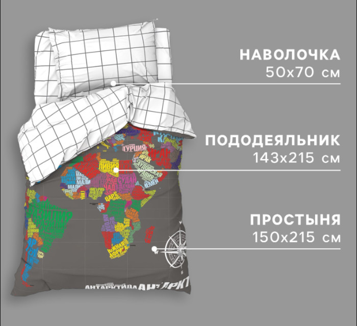 — Комплект постельного белья из бязи Карта Мира на русском