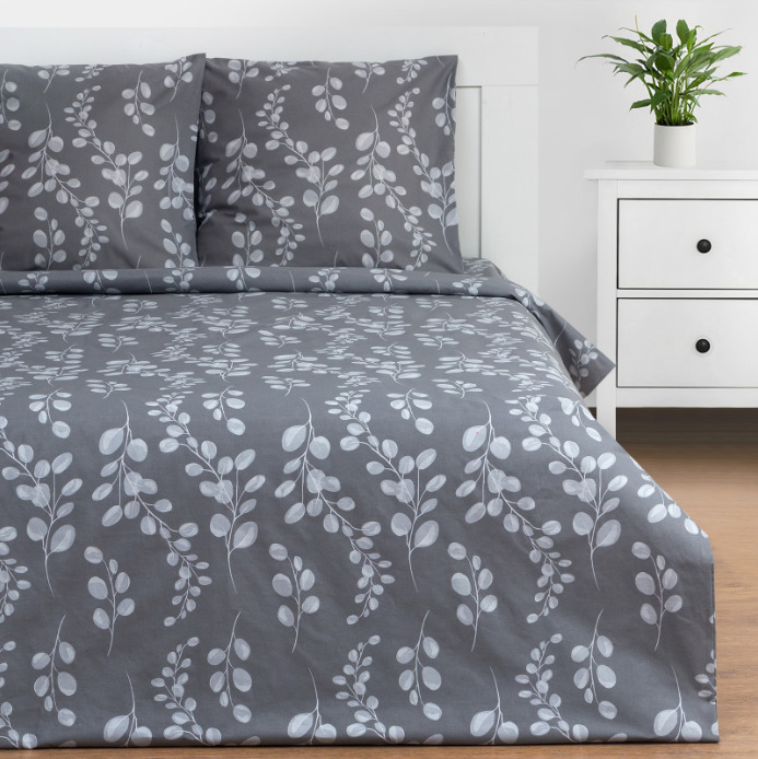 Комплект постельного белья из поплина Эвкалипт серый