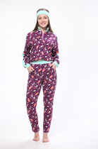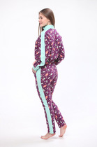 Комплект женский домашний,состоит из трёх предметов: широкий джемпер без нижней резинки с атласной лентой,горловина стойка на молнии. Брюки с высокой посадкой,силуэт прилегающий,в боковых в швах карманы. Для головы имеется подвязка,теперь ухаживать за лицом нашим модницам будет еще удобнее!