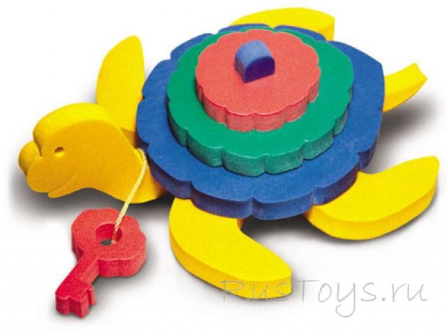 В игре с такой черепахой дети одновременно учатся соотносить размер фигур, учатся понимать пространственное соотношение деталей. Эту черепашку можно пустить поплавать в ванной.Возраст: 1-4 лет.