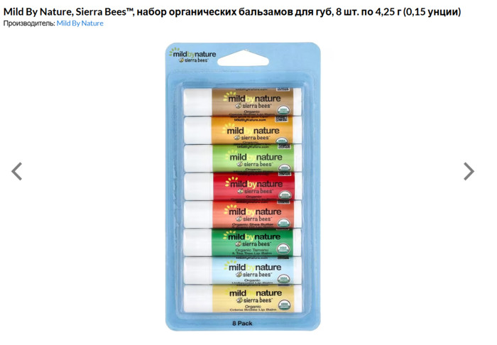 Заказать Mild By Nature, Sierra Bees™, набор органических бальзамов для губ, ШТУЧНО