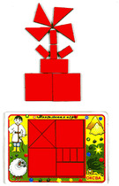 Из квадрата, разрезанного на множество частей, составляются фигурки животных, предметов и людей.