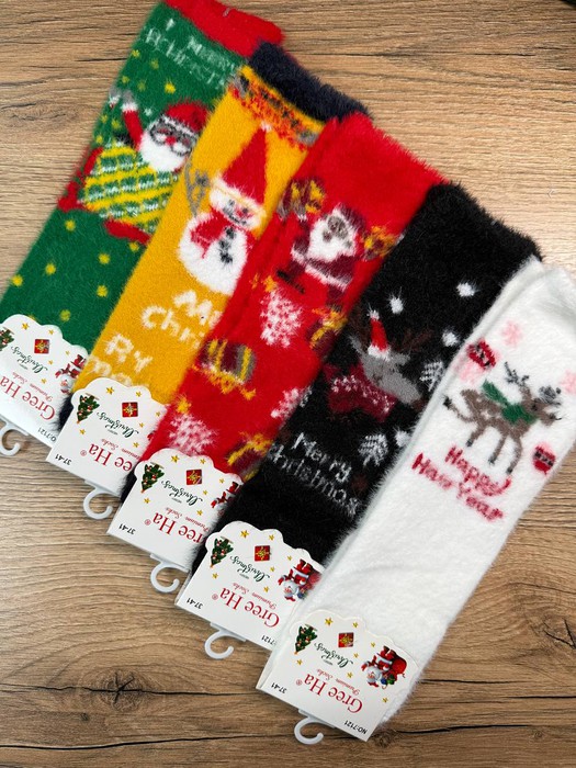 Носки женские плюш р.23-25 Снеговик Красная ветка
