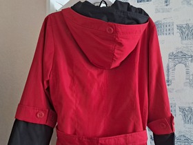 Продаётся женский яркий плащ в хорошем состоянии. Яркий красный цвет с чёрными рукавами. Размер 52, хорошо родойдёт на р. 50-52.