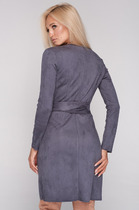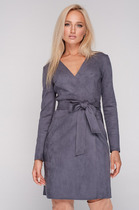 Описание модели: Комфортное платье из искусственной замши на трикотажной основе. Модель полуприлегающего силуэта. Изделие выполнено на запахе и имеет элемент модного декорирования- необработанные срезы. Рукав длинный.