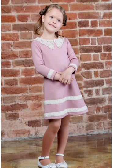 Платье с кружевным воротником и отделкой. Состав: 50% вискоза, 50%полиэстер,