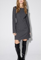 Платье-футляр длины мини. Детали: прилегающий силуэт, рельефные швы переда и спинки, круглая горловина, втачные длинные рукава с декоративным вырезом по окату, потайная застежка в среднем шве спинки, фигурный низ, без подкладки. Платье из текстильной ткани с рисунком «ёлочка»