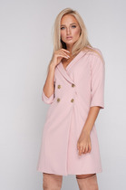 Описание модели: Шикарное платье для любого мероприятия из костюмного полотна. Модель полуприлегающего силуэта. V-образный вырез горловины, двубортная застежка на петли и пуговицы, воротник шалевидной формы. Рукав 3/4