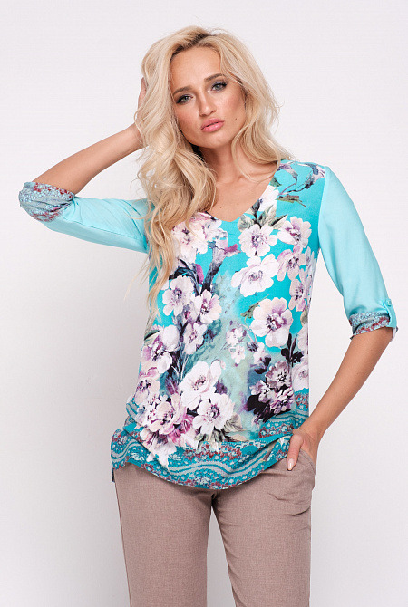 Описание модели: Стильная блуза из штапеля. Модель свободного силуэта, подойдет на любой тип фигуры. V-образный вырез горловины, рукав с патой.