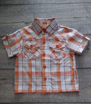 Легкая летняя рубашка для мальчика на 3 годика с принтом на спинке.