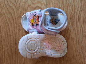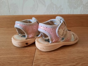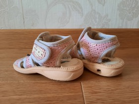 Б/У, сандалии Huali. Закрытие на липучку. Цвет: розовый. Состав: верх текстиль 100%, подошва резина 100%. Размер: 17 наш, длина по стельке 13 см, длина стопы 10,5 см. Без коробки. Состояние: б/у, удовлетворительное, требуется подклейка.