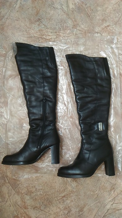 Оригинальные, производство Финляндия: мягкая натуральная кожа, внутри натуральный мех - овчина, каблук 8см, удобная колодка, ботфорты на рост от 165 см, для длинных ног.