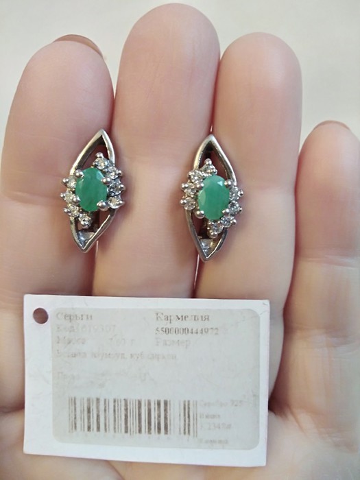 — Серьги серебряные с природным изумрудом