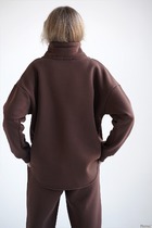 Толстовка женская из футера с начесом. Выполнена из натуральных материалов с добавлением синтетических нитей, ворсовой слой с изнанки создает согревающий слой. В тёплое время года используется как верхняя одежда, в холодное время года толстовку можно носить в качестве второго слоя одежды (для утепления).Воротник стойка на дополнительной шнуровке, с переде вставка из трикотажа(кашкорсе) . Модель имеет спортивный обтекаемый облик, длинные рукава на манжете. Линия низа фигурная по бокам плавные разрезы в стиле "рубашки". Толстовка без карманов. Данная модель может приобретаться костюмом или может комбинироваться с различными спортивными штанами, утепленными лосинами, юбками, джинсами и др.