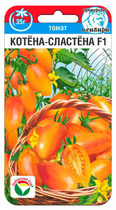 Растение индетерминантное, с частым заложением соцветий, формируется в 1-2 стебля. Первое соцветие закладывается над 6-7 листом, последующие через 1-2. Кисти простые с 8-12 плодами, массой 30-35 г. Плоды удлиненно яйцевидной формы с заостренным носиком, ярко желтые с пестро-оранжевыми штрихами и полосами. Отличаются уникальными вкусовыми качествами, как в свежем, так и в консервированном виде. Благодаря хорошей транспортабельности плоды долго сохраняют свежесть и внешний вид. Гибрид устойчив к бурой пятнистости, вирусу мозаики томата, бактериальной пятнистости листьев. Урожайность 15-17 кг/м2 при формировании в 1-2 стебля. Сбор плодов производится кистями или отдельными плодами, которые прекрасно отделяются от плодоножки.