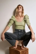 Укороченный Топ ZARA с рукавами-фонариками, размер L, новый с биркой. Изготовлен из хлопка и эластана. Цвет пастельно оливковый универсален и легко сочетается с разными элементами гардероба. Подойдёт на большую грудь. Длина изделия 30 см, ширина по подмышкам 40 см, длина рукава 67 см. Очень хорошо тянется.