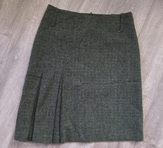 Юбка женская трапециевидной формы , без подкладки, с ассиметричным низом. Перед юбки с имитацией запаха, правая часть переда из основной ткани, левая из ткани - компаньона. Заднее полотнище со средним швом, в котором расположена потайная молния. В правом боковом шве обработан карман. Верх обработан притачным поясом, с отделкой из ткани – компаньона.