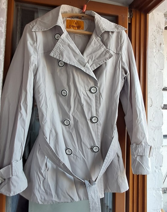 Продаётся женская ветровка нежного светло серого цвета из плащевки, указан размер 52, но немного маломерит, больше подойдет на размер 48-50.