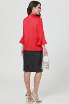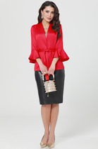 Стильный женственный жакет с полузапахом, без застежки. Рукава украшены воланами. Вместо застежки к жакету прилагается пояс. Модель прекрасно смотрится распахнутой и подпоясанной. Подойдет и к юбкам, и к брюкам.