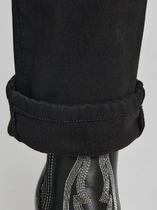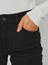 Женские классические утепленные джинсы с посадкой Regular fit (полуоблегающие по бедру), прямые к низу от колена. Высокая талия. Для улучшения посадки по талии сделан подкройной пояс из 2-х частей. Выполнены из утепленной слабоэластичной ткани Black denim comfort stretch, к изнаночной ткани прикреплена дополнительная трикотажная ткань (флис) с мягким, шелковистым и приятным на ощупь ворсом. Темная стирка со слабовыраженными потертостями по швам. Параметры указаны для размера 28.Длина внутреннего шва для роста 32 - 81 см., для роста 34 - 86 см