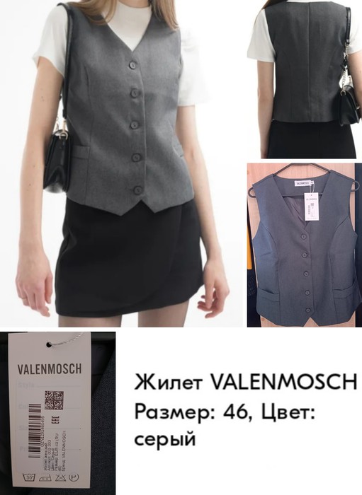 Женский жилет, размер 46 (M), новый с биркой. Состав: хлопок - 70%, полиэстер - 30% для комфортной носки и долговечности. Серый цвет универсален. Подойдёт для школы.